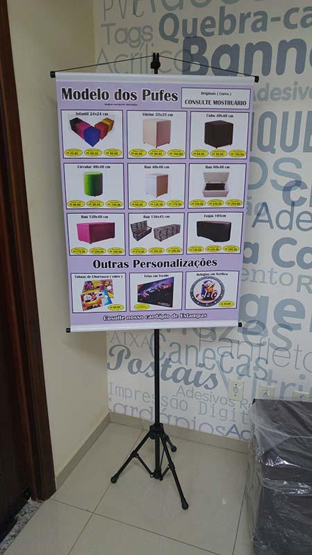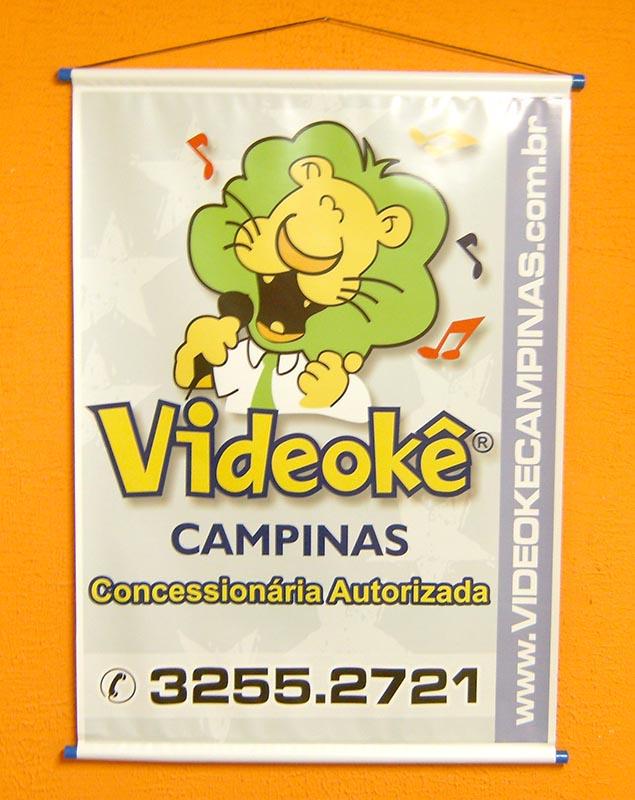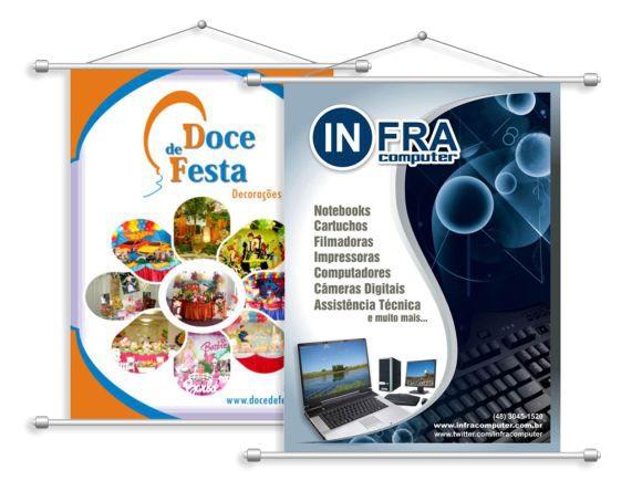 O banner pode ser impresso em lona ou tecido, seu uso é na posição vertical, possui na maioria das vezes acabamento com bastões arredondados, ponteiras plásticas e cordão para pendurar. Tem a finalidade de transmitir informação de pequena a longa distância, dependendo do seu tamanho. Pode ser feito também em formato de flâmula.