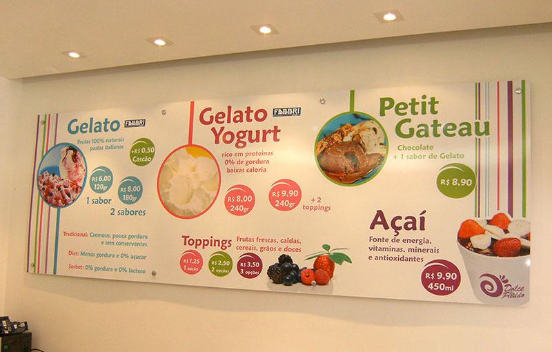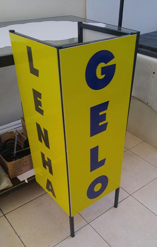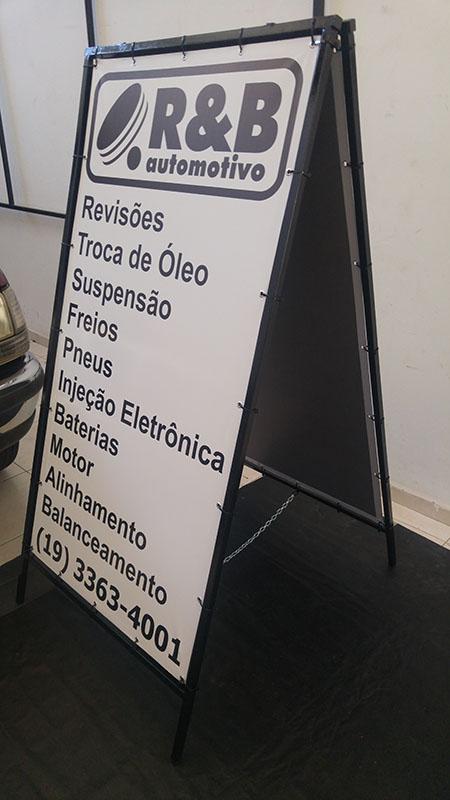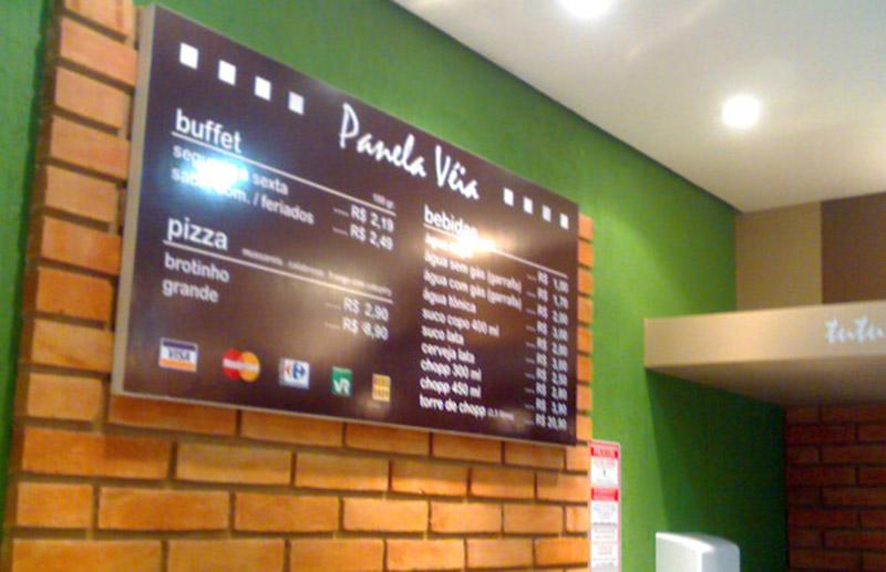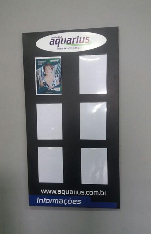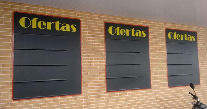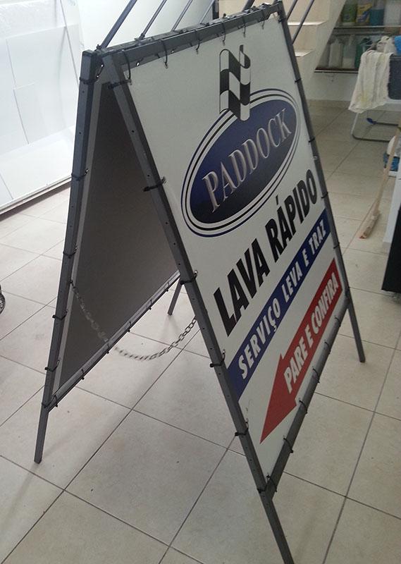Os materiais mais usados são o PVC, PS, ACM, Policarbonado, Acrílico, Vidro, Galvanizado e o MDF, devido sua superfície lisa podemos aplicar o adesivo ou aplicar letras caixa para exibir sua informação ou propaganda. Tem a opção de ser feito em forma de cavalete ( ferro ou madeira com placa ou lona). Pode ter qualquer tamanho, espessura ou formato, é usado tanto em área externa quanto interna.